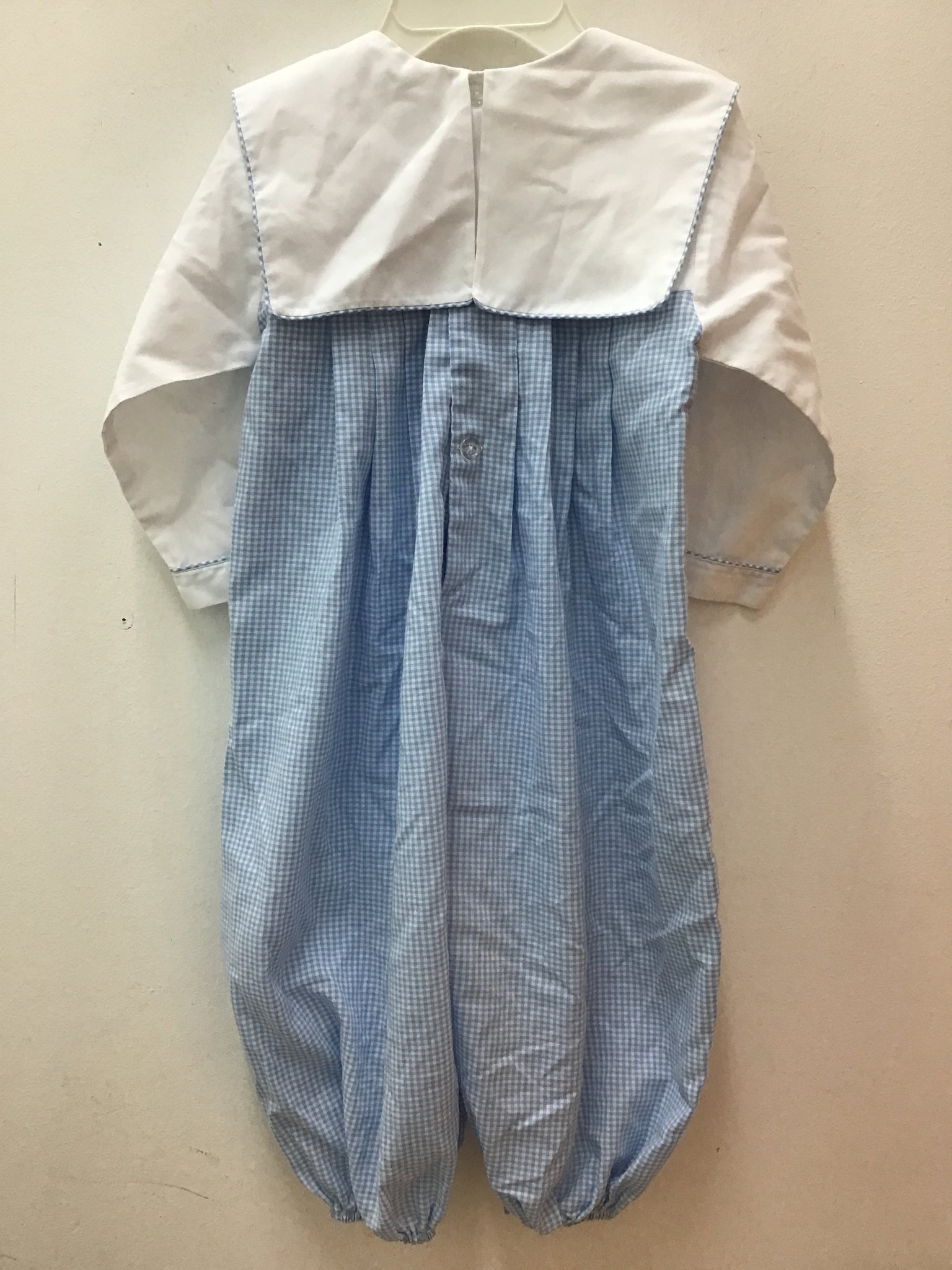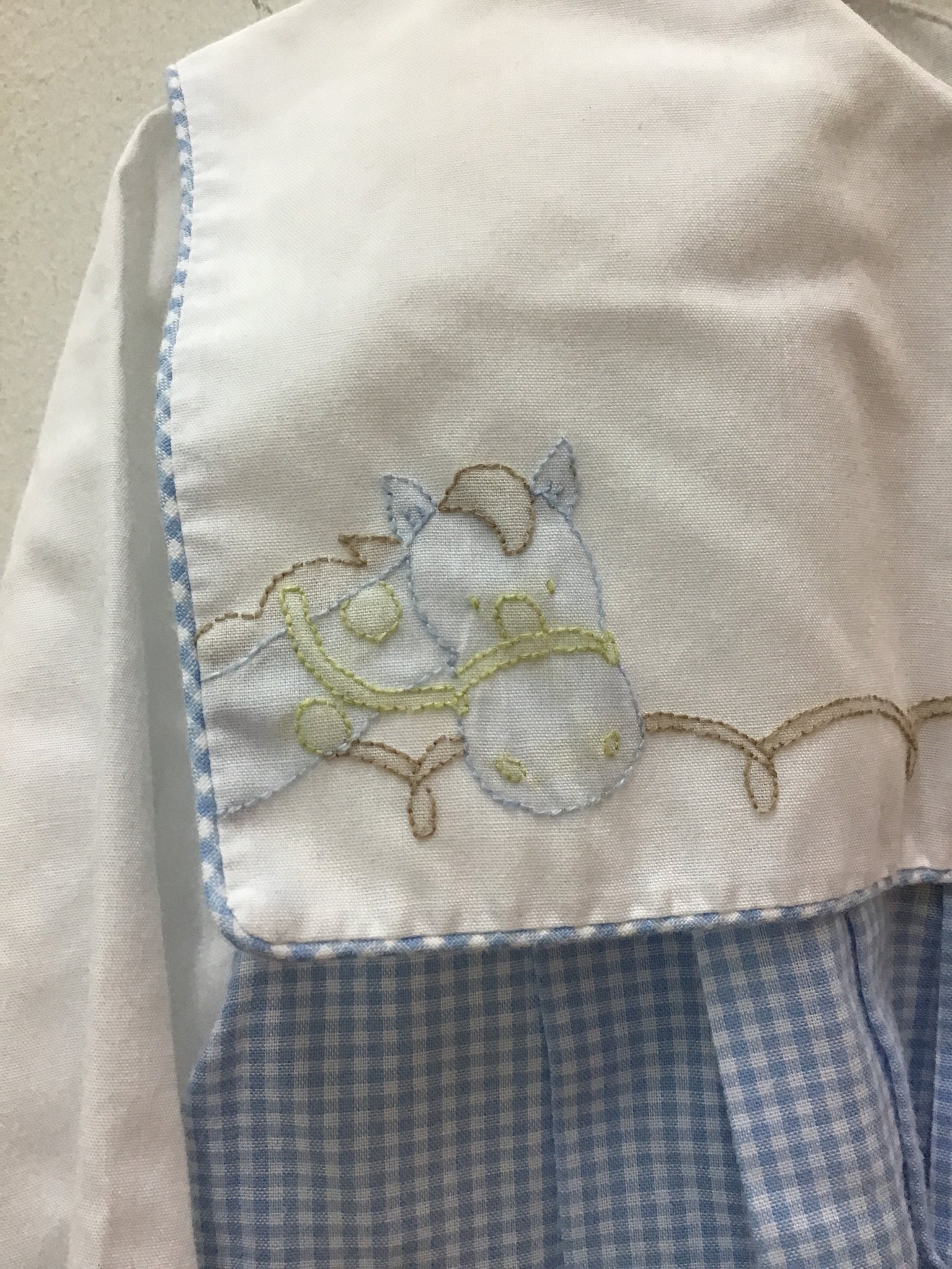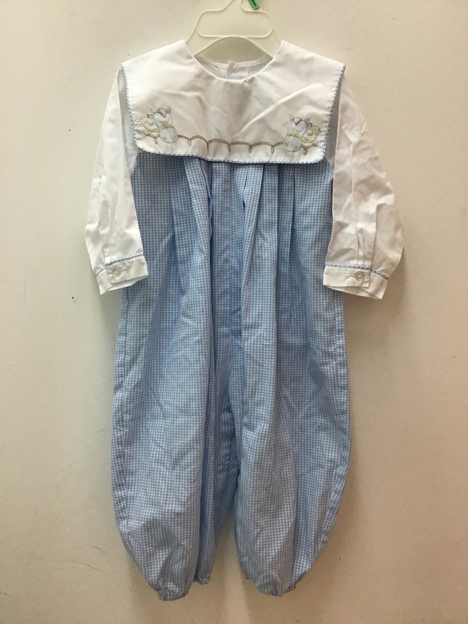 romper blue white check giraffe