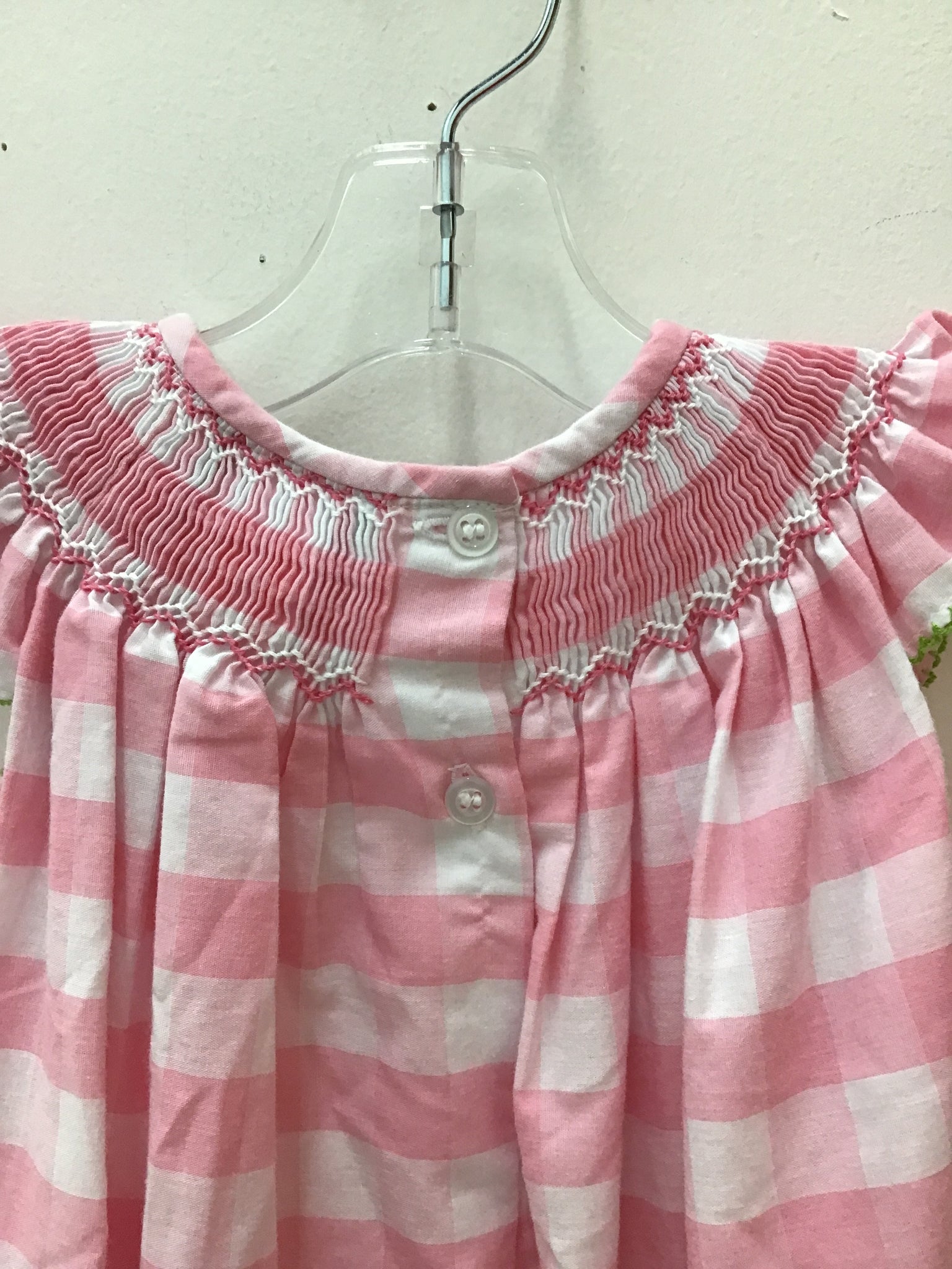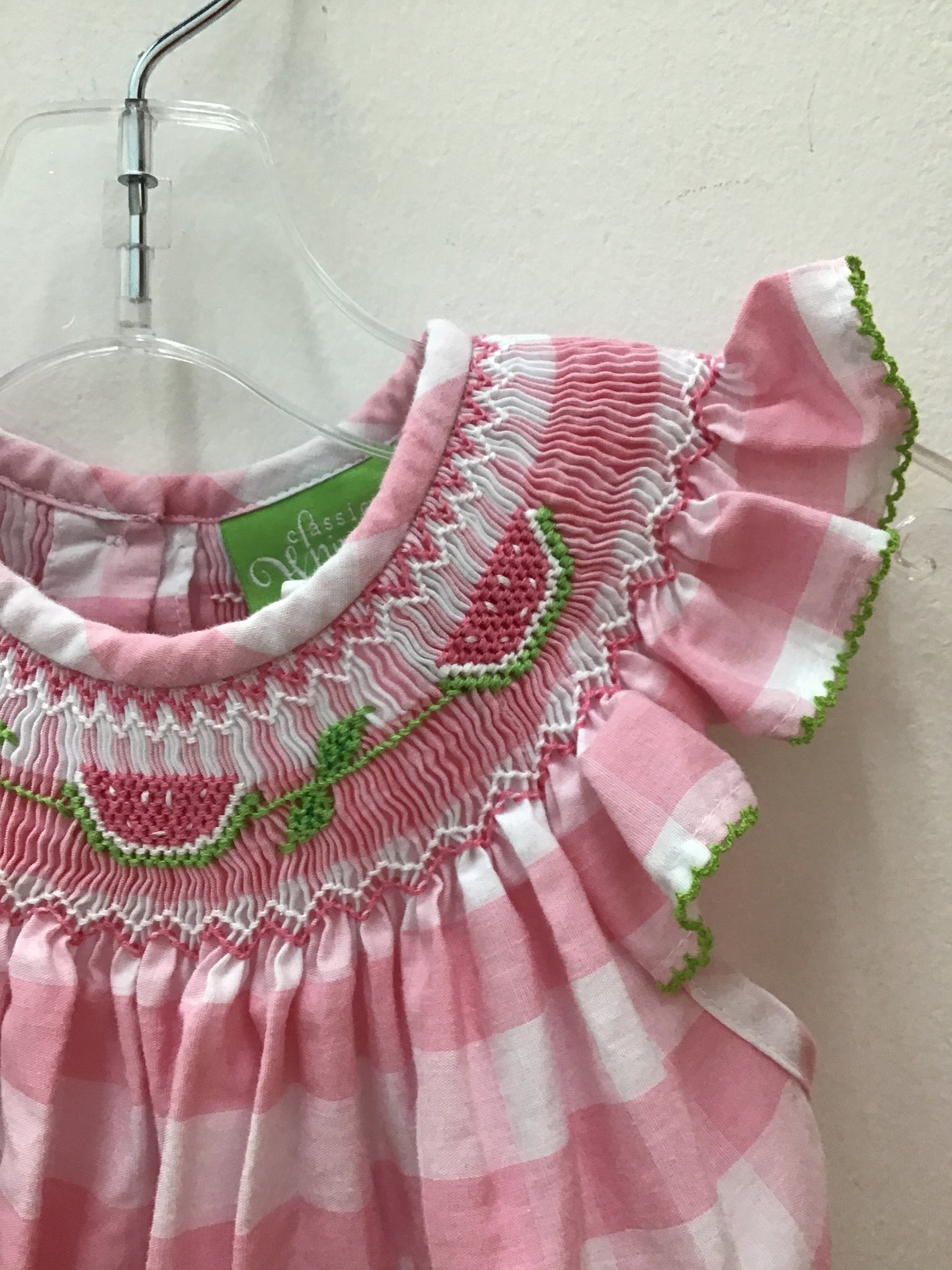 bubble pink white check smocked watermelon