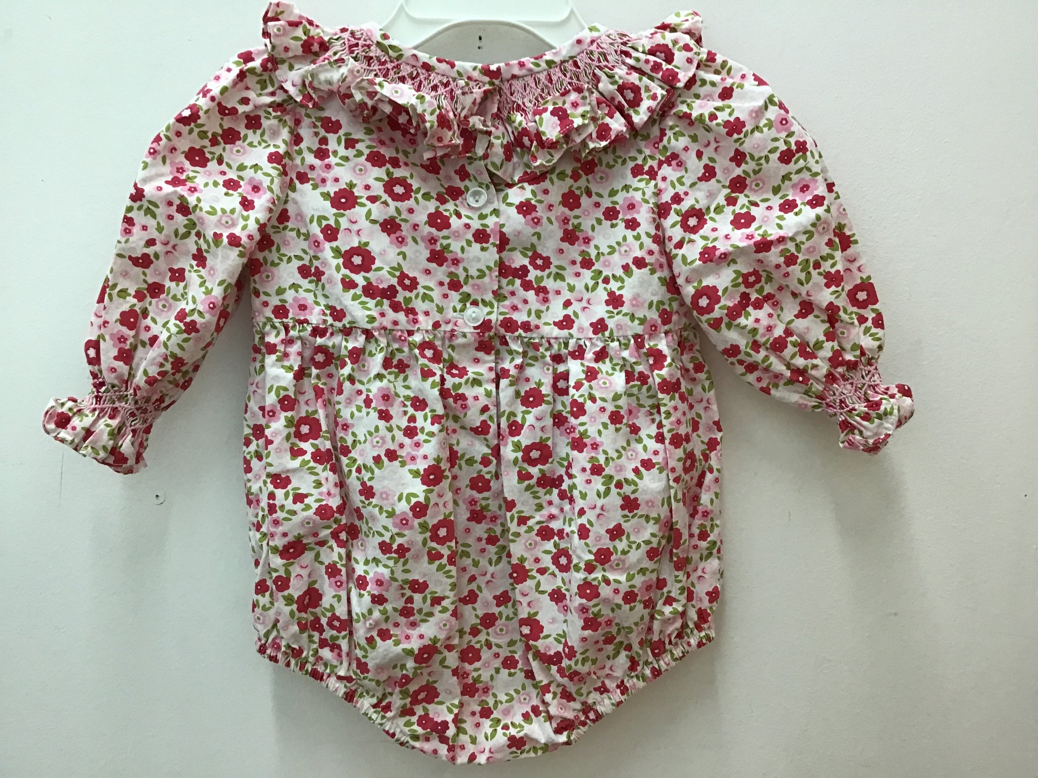 romper white red pink green flowers smocked