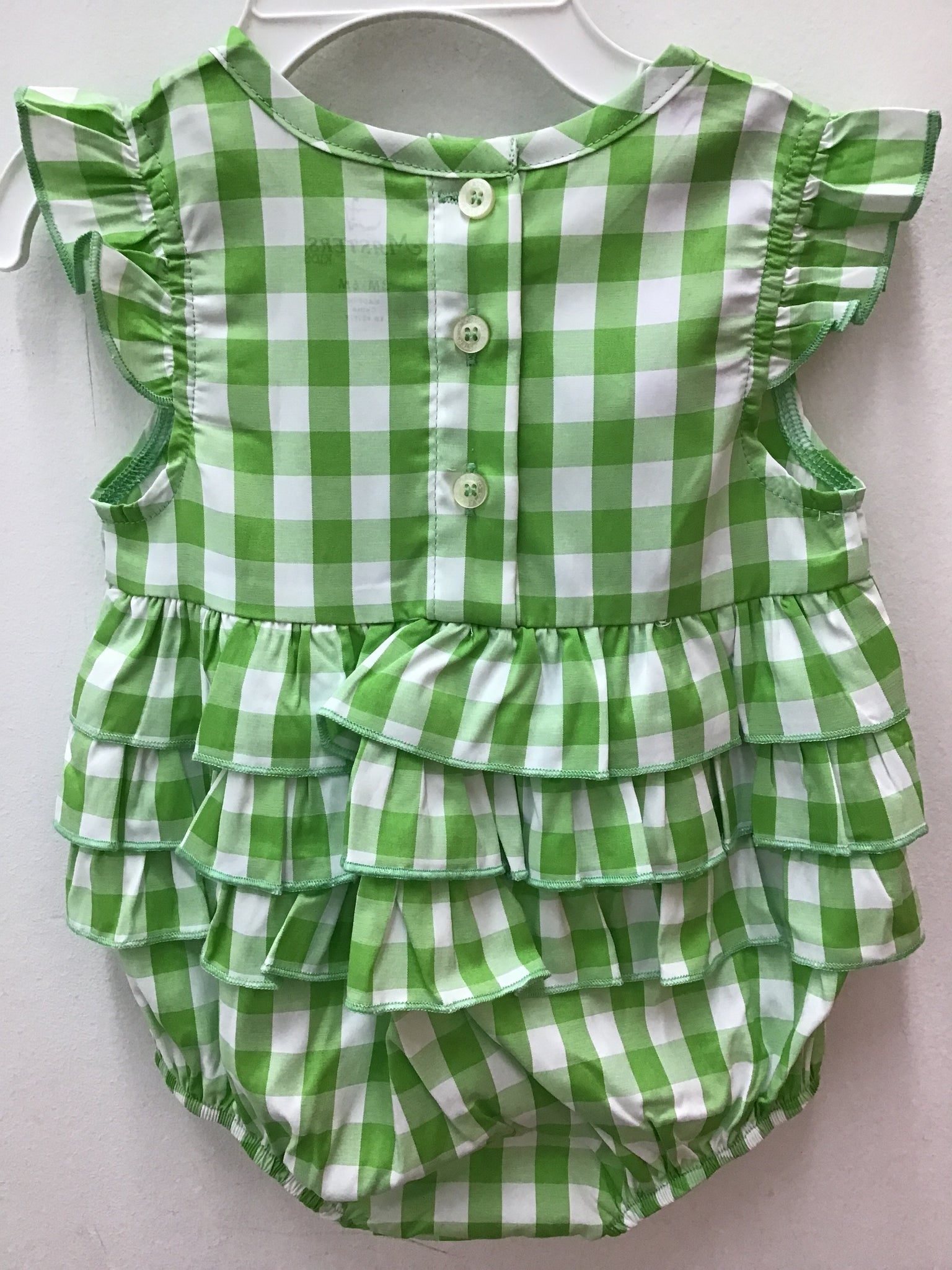 romper green white check