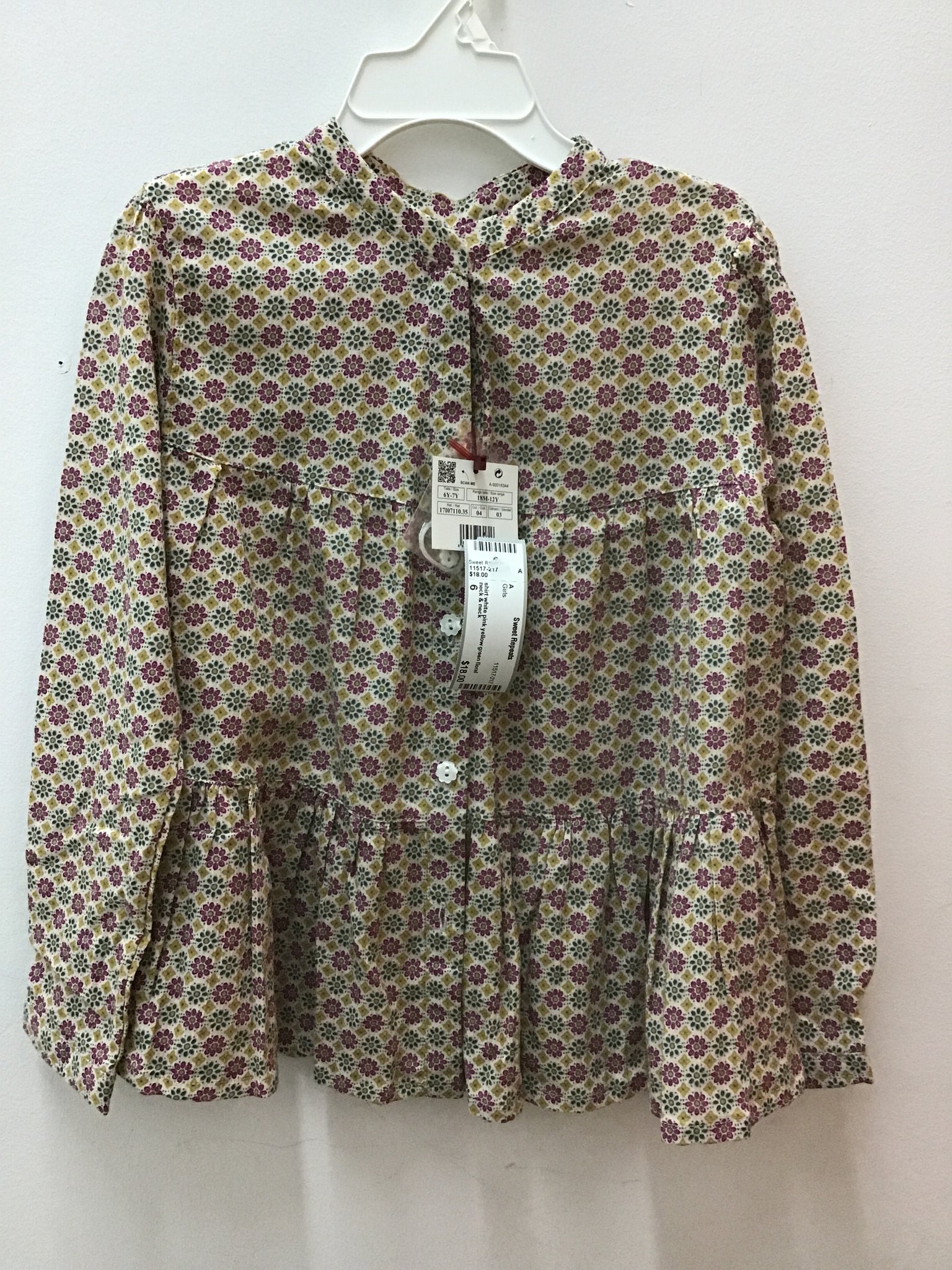 shirt white pink yellow green floral