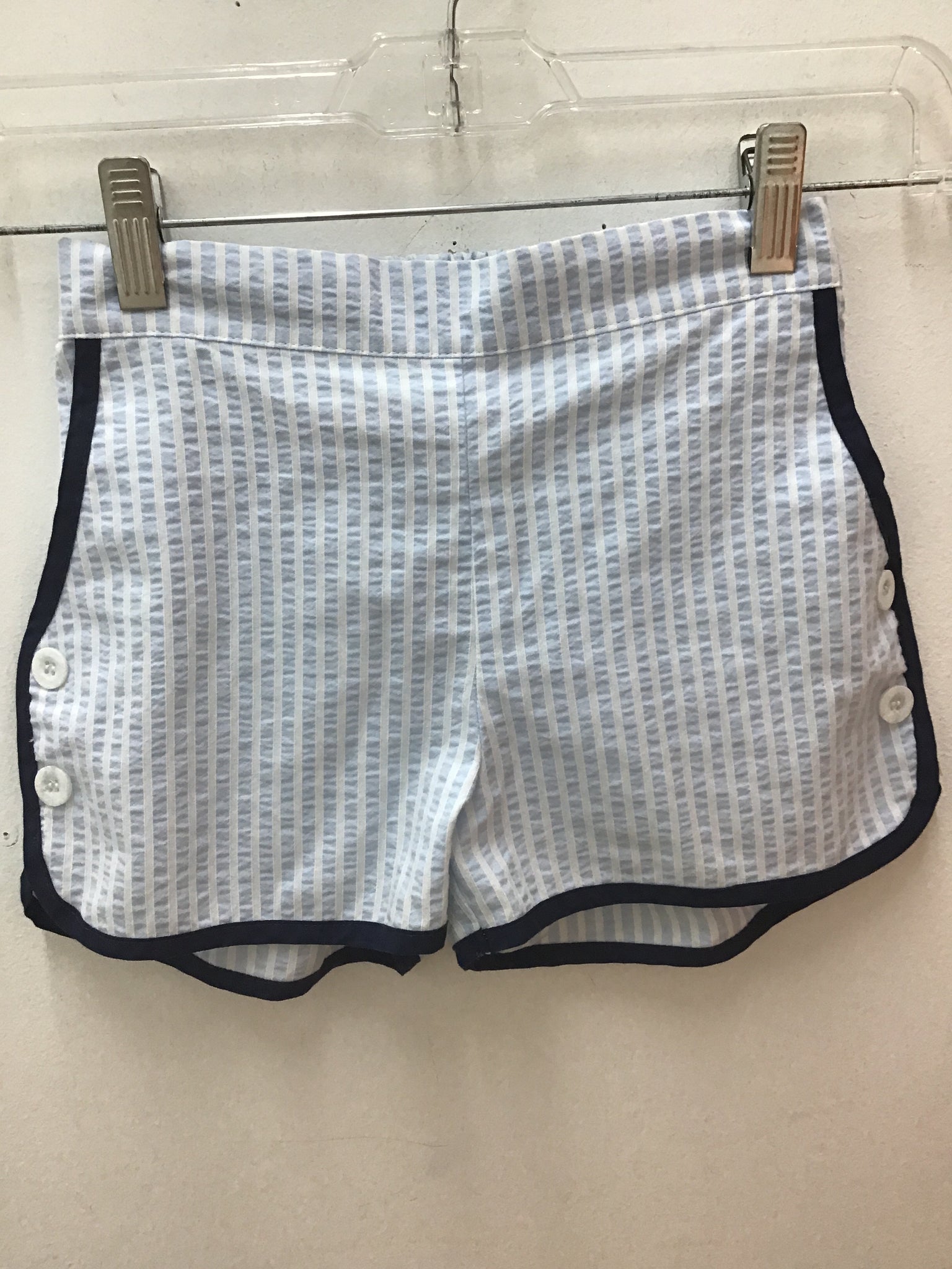 shorts blue seersucker navy trim