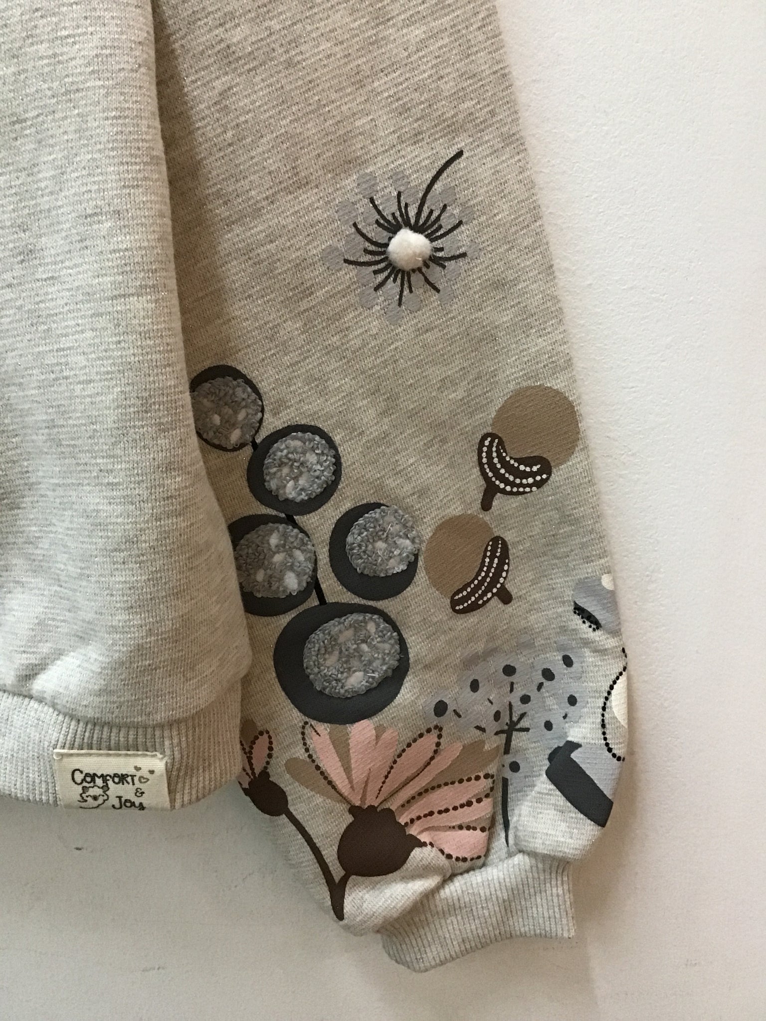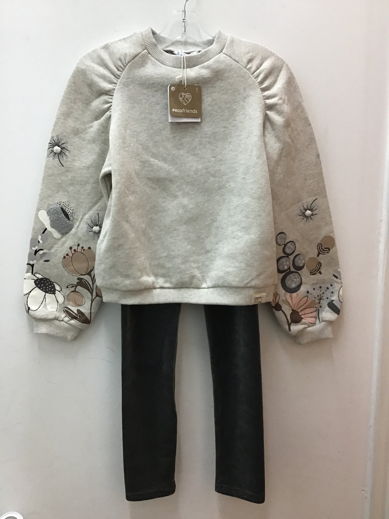 2pc leggings grey velour shirt tan sparkle flowers sleeve NEW retail tag